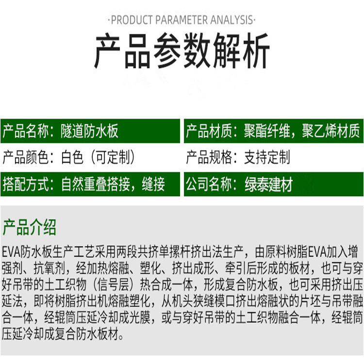 防水板是以高分子聚合物為基本原料制成的一種防滲材料,既可以防止液體滲漏,也可以預防氣體揮發(fā)。在建筑、交通、地鐵、隧道、工程建設中廣泛運用。防水板主要功能是防止液體的滲漏和氣體的揮發(fā), 防水板在巖石工程中的作用主要為防滲和隔離,但是同時也起到加強和防護的作用。它主要應用在:土石壩、堆石壩、砌石壩、混凝土壩、尾礦壩、污水庫壩、渠道、蓄液池等工程的防滲,地鐵、地下室和隧道防滲襯砌,公路鐵路地基的防滲,衛(wèi)生垃圾填埋場中配合長絲土工布、膨潤土防水毯等土工材料使用等等。