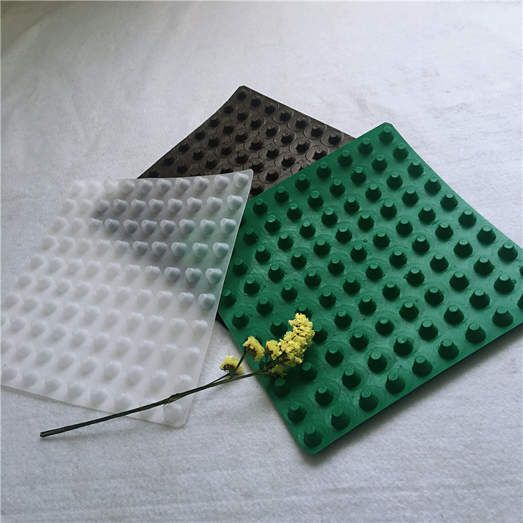 圓錐突臺的頂面膠接一層過濾土工布,以阻止泥土微粒通過,從而避免排水通道阻塞使孔道排水順暢。 傳統(tǒng)的排水方式使用磚石瓦塊作為導(dǎo)濾層、使用較多的鵝卵石或碎石作為濾水層、將水排到指定地點。而用排水板取代鵝卵石濾水層來排水則省時、省力又節(jié)能、節(jié)省投資、還能降低建筑物的荷載。