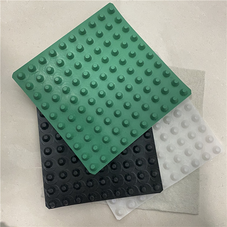 圓錐突臺(tái)的頂面膠接一層過(guò)濾土工布,以阻止泥土微粒通過(guò),從而避免排水通道阻塞使孔道排水順暢。 傳統(tǒng)的排水方式使用磚石瓦塊作為導(dǎo)濾層、使用較多的鵝卵石或碎石作為濾水層、將水排到指定地點(diǎn)。而用排水板取代鵝卵石濾水層來(lái)排水則省時(shí)、省力又節(jié)能、節(jié)省投資、還能降低建筑物的荷載。